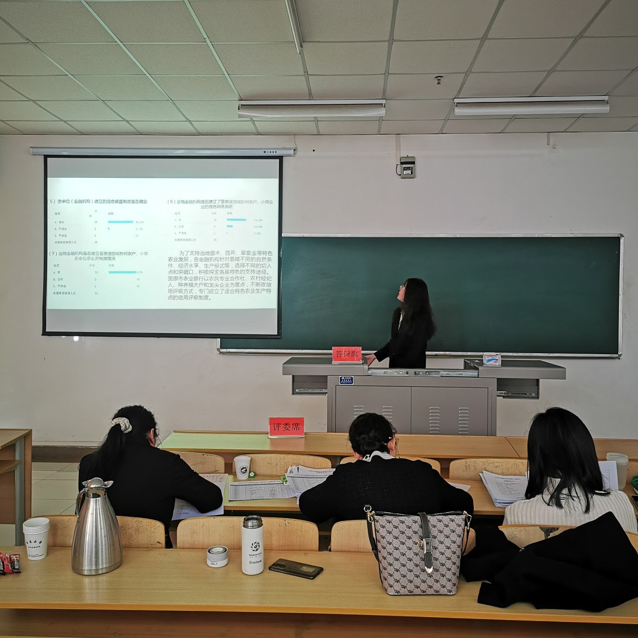 此次大学生创新创业项目涉及面广、内容丰富。答辩评审中,各团队负责人采用PPT汇报的形式,汇报了项目立项背景、调研方式、研究内容、研究成果、创新特色等方面。