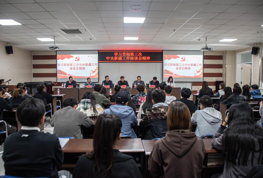 宣讲最后,李有亮欢迎同学们多去感受大美新疆,他说,“多彩新疆永远欢迎大家”,并呼吁同学们讲好新疆故事,宣传好新疆。至此,第三次中央新疆工作座谈会宣讲会圆满结束。