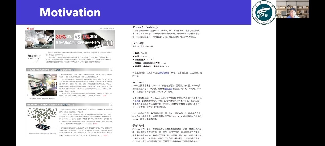 本次讲座中,周崇阳博士围绕“新兴经济体企业如何在全球价值链中进行技术升级,避免陷入低附加值经济活动?”这一问题,从全球价值链的概念及影响、发展中国家的新兴经济体在全球链中的发展阶段、新兴经济体如何在全球价值链中进行技术升级等方面进行了讲解。首先,周崇阳博士对全球价值链的概念以及全球价值链过程中出现的“俘获效应”、“微笑曲线”进行了解释。其次,周崇阳博士指出,发展中国家的企业在全球价值链中要经历“in-out-in”三个阶段,他强调了“out”阶段的重要性以及存在的问题。而后,通过对研究背景、理论基础的详细介绍,他分享了论文的研究假设、研究变量、研究方法与研究结论。最后,周崇阳博士进行了总结:通过对内向采购能力的分析与研究,我们发现内向采购能力对于新兴经济体公司的技术升级、参与全球价值链“out”阶段至关重要;本研究丰富了“in-out-in”GVC政策、“内向采购”相关研究,也为研究中国企业摆脱低附加值经济活动的束缚以及其他新兴经济体进入全球价值链“out”阶段提供了指导意义。
