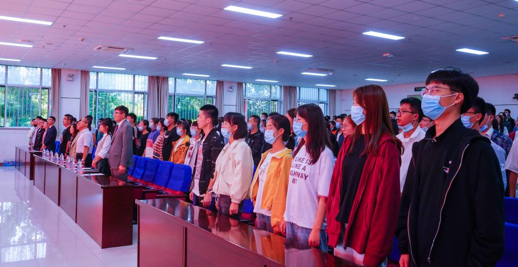 办公室主任杨建武,教学科研办公室负责人张彩彩,学生工作办公室负责人何韶华,学生工作办公室辅导员艾萨、孙文元,新生班主任代表于艳丽以及2020级全体同学参加会议。典礼由程胜利主持。