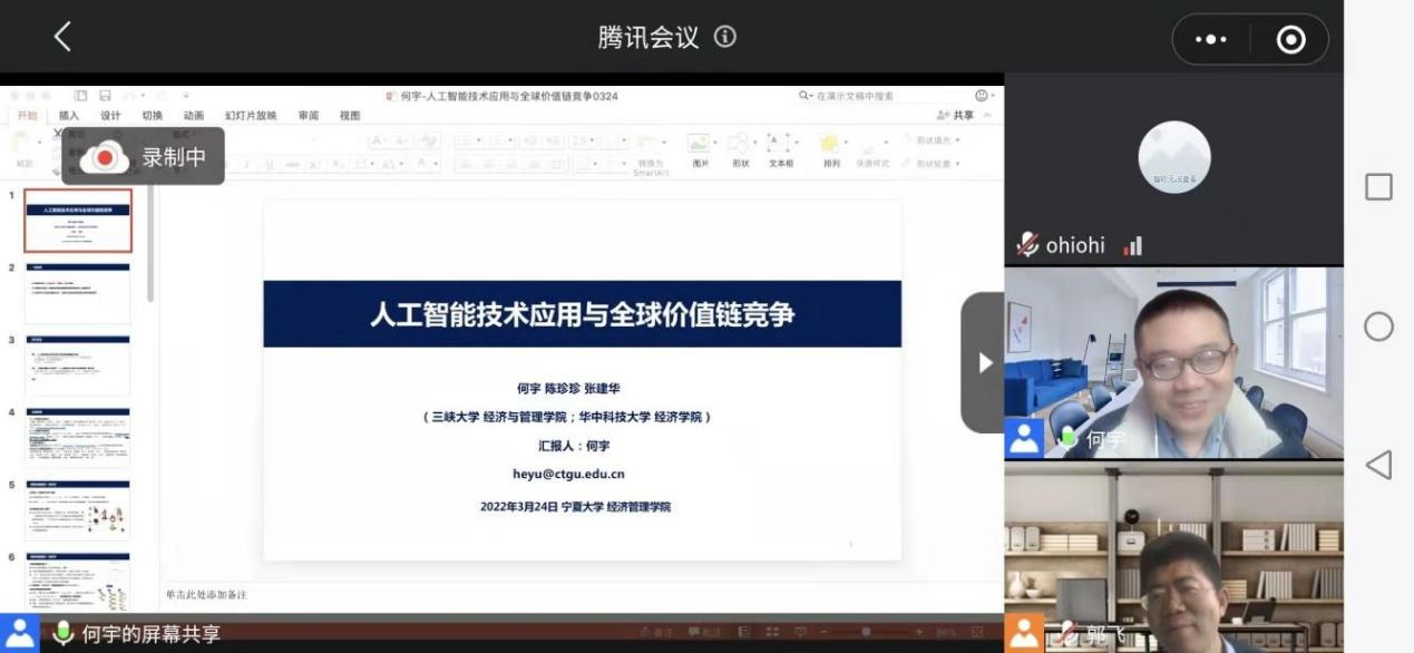 青年学者何宇博士分享其最新研究成果《人工智能技术应用与全球价值链竞争》,该成果发表于《中国工业经济》。本次会议由赌场老虎机