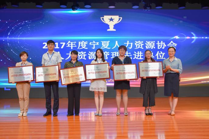 在热烈的掌声中,宁夏人力资源协会为获得“2017年度人力资源管理先进单位、先进个人”和“人力资源服务优秀会员企业家”颁奖。