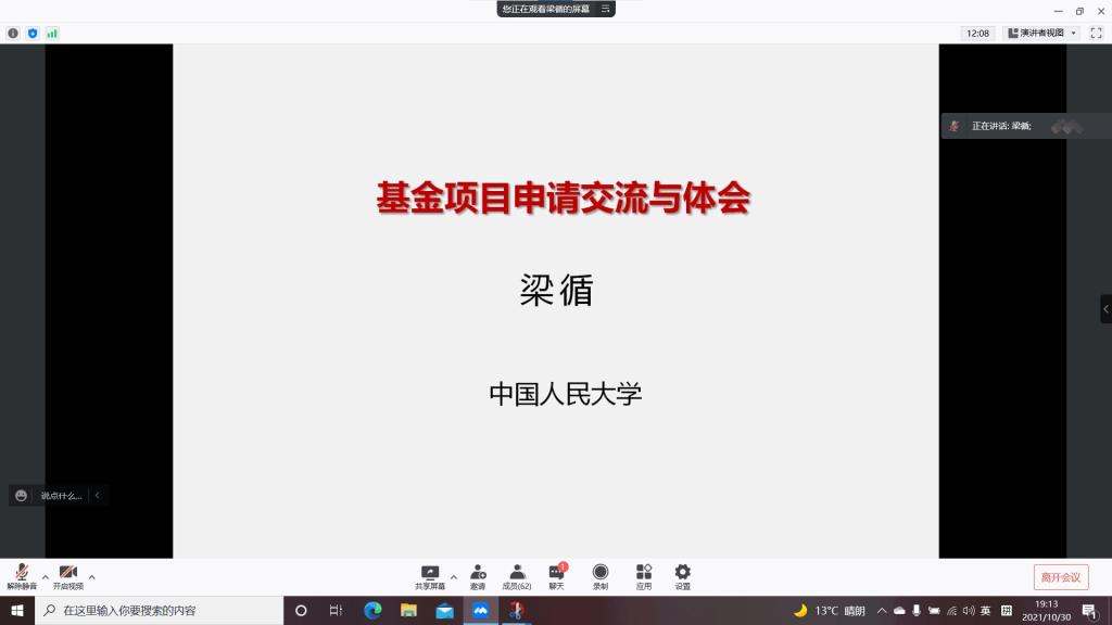贺兰山讲席学者、博士生导师梁循教授为全院教师作分享讲座。全院百余名教师和硕士博士研究生积极参加了本次线上辅导报告会。