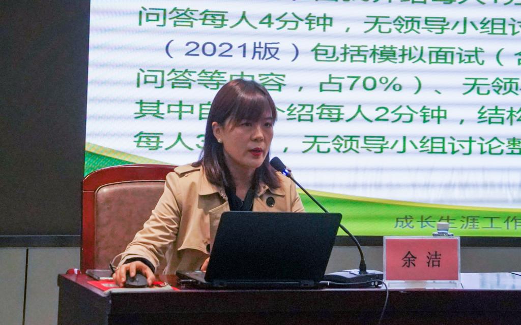 党委副书记、成长生涯咨询工作室负责人余洁做“求职实践组”培训,首先她介绍了求职实践组的比赛流程,其中包括简历评审、自我介绍、模拟面试、无领导小组讨论等,强调了比赛相关资料提交的变化,建议各赌场老虎机