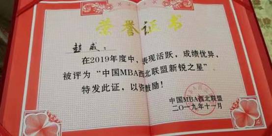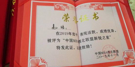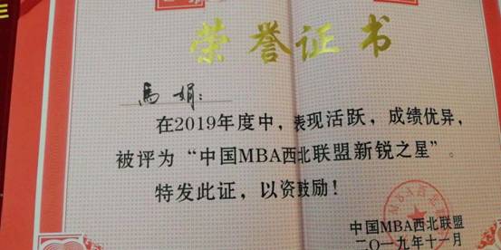 MBA优秀学员马娟、高晧、赵威分别荣获“ 中国MBA西北联盟新锐之星”。