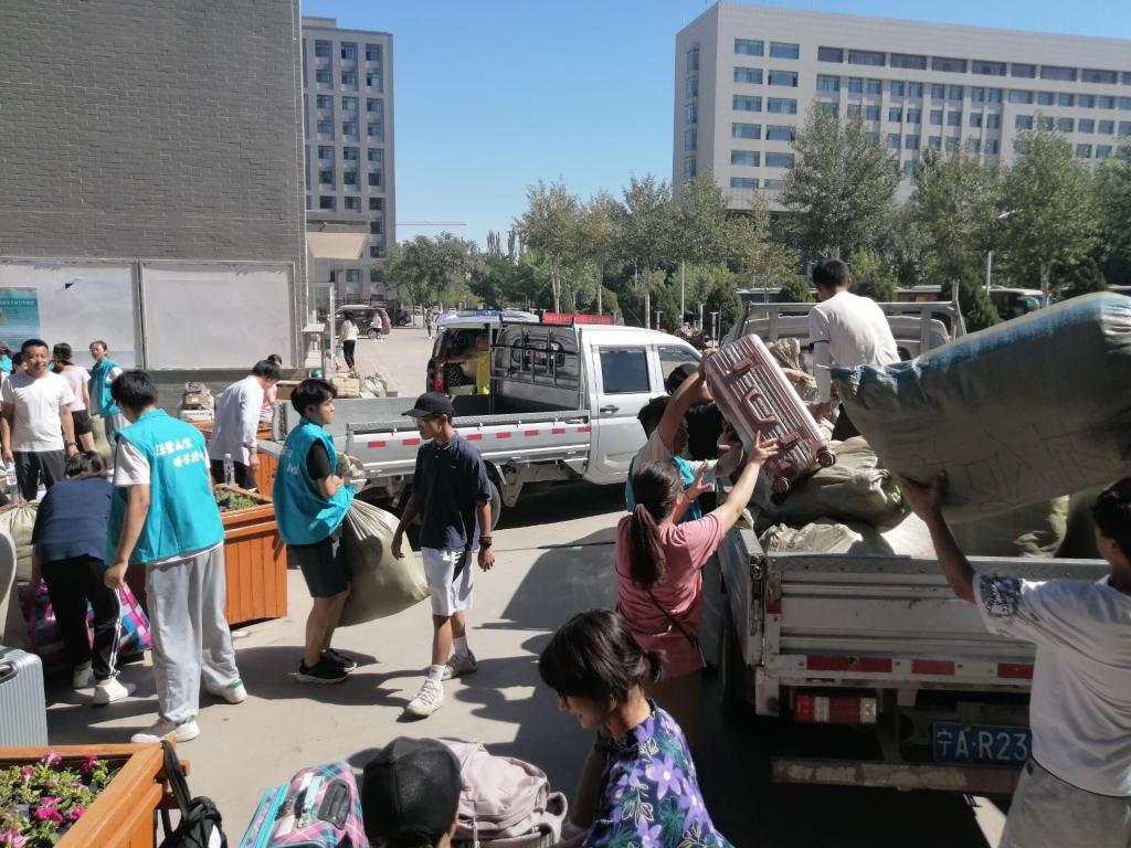 还组织2019、2020级志愿者帮助搬运行李,减轻现场负担,生动诠释了“经管人生,博学济世”的宗旨。