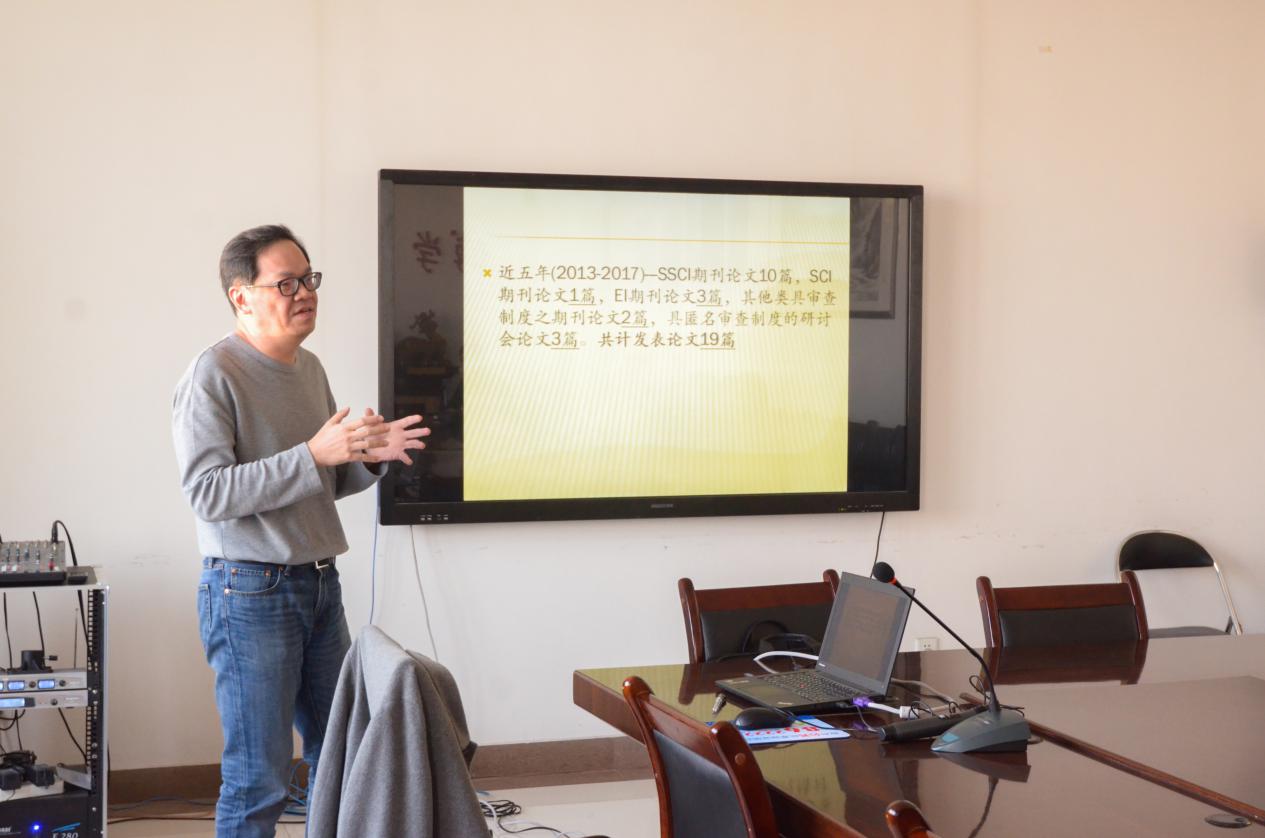 冯蛟介绍了林宪政教授的工作经验以及论文成果后,讲座正式开始。林宪政从论文的写作以及投稿技巧两个方面入手,向与会师生展示了他的思路和要点,介绍了他发表SSCI于SCI论文的经验与想法。