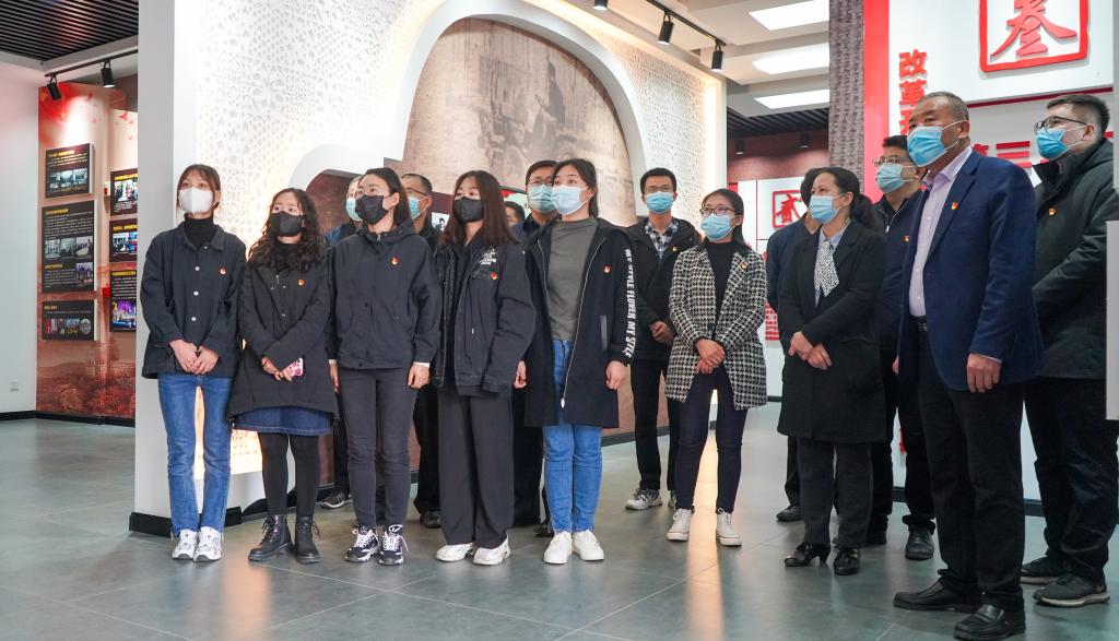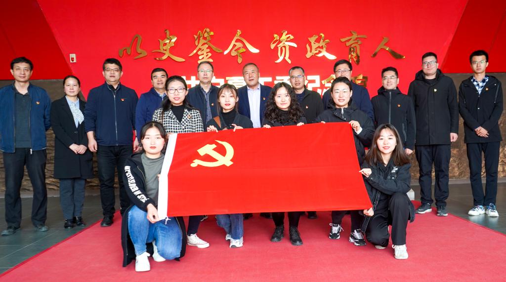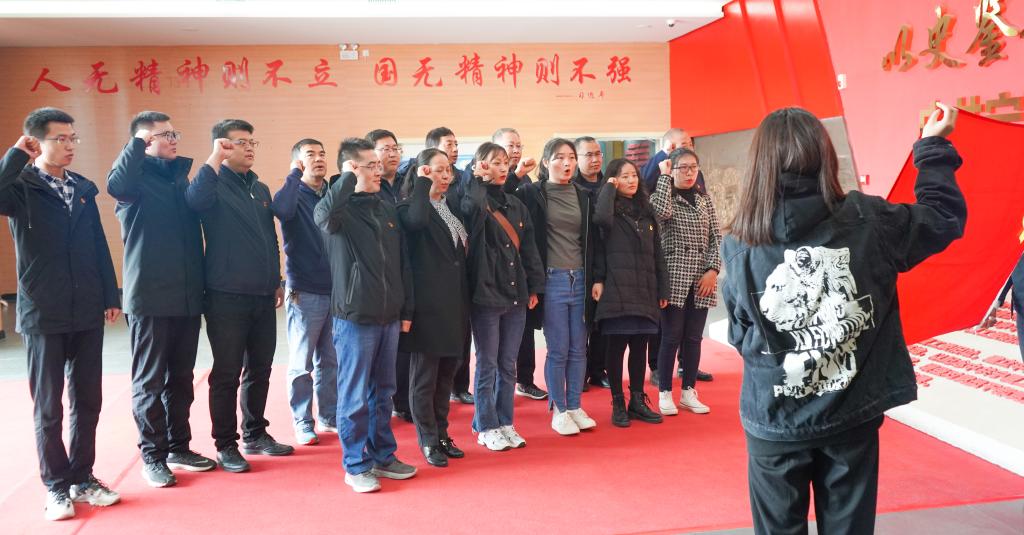 在纪念馆大厅,面对鲜红党旗,院党委书记朱伟带领党员同志们重温入党誓词,号召大家不忘初心、牢记使命。