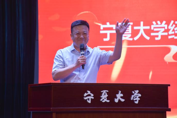 给毕业生的最后一堂课如期进行。贺兰山校区文荟楼东报告厅经管2019届毕业生齐聚一堂,冯蛟副院长隆重介绍了毕业讲堂的演讲嘉宾并主持毕业讲堂。