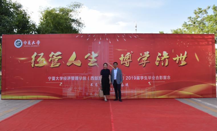 红毯两侧的背板墙上书写着习近平总书记对青年人的美好期待,张贴着经管学子大学学习生活中的精彩相片,记录着每位经管人的难忘华章。