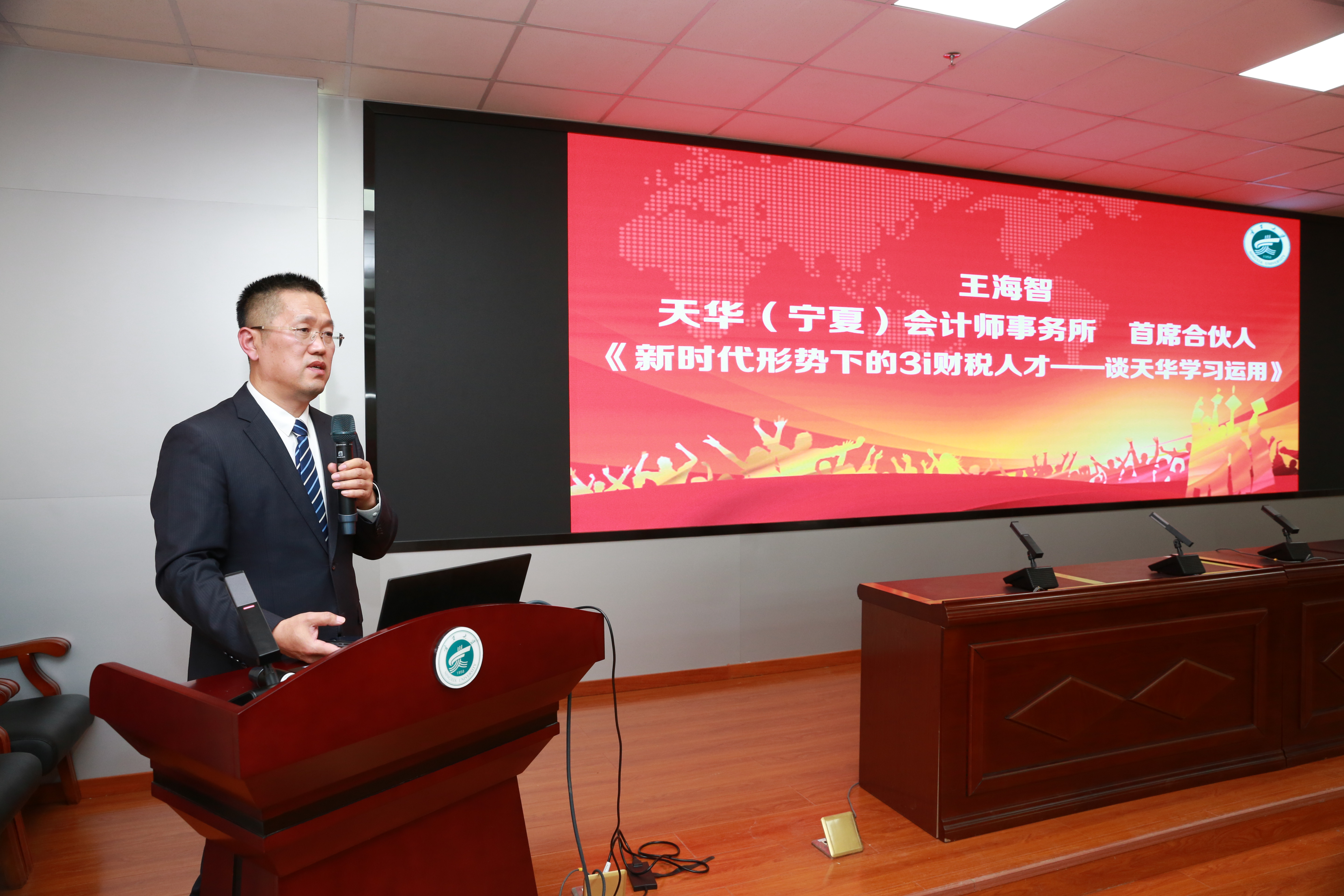 会议第四项内容是主旨演讲。陈志灵、王海智、张凤莉三位嘉宾进行了演讲,主题分别为《强化校企合作共育时代新人》《新时代形势下的3i财税人才——谈天华学习运用》《会计师事务所审计业务承接时对独立性和专业胜任能力的考虑》。三位主旨演讲嘉宾从加强校企合作、学科交叉融合、人才联合培养、理论联合创新、科研项目联合研究、适应时代发展、就业与实践、专业特色发展、专业技能与能力等方面做了深入浅出、富有思考与洞见的演讲。