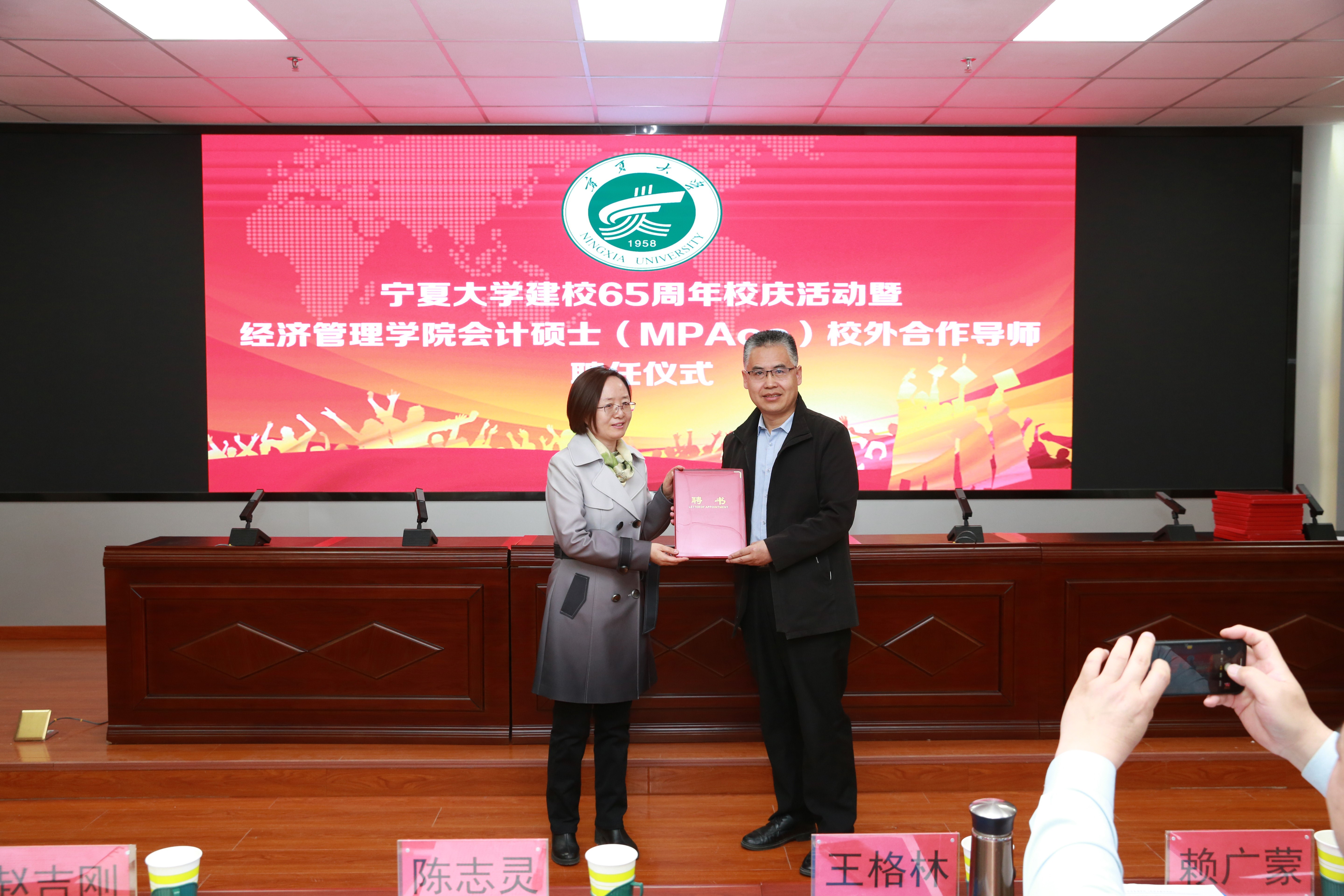 领导为校外导师颁发聘书。宁夏水投云澜科技股份有限公司董事长陈志灵,宁夏西北明天科技股份有限公司董事长赖广蒙,宁夏昊源联合会计师事务所所长牛建强,宁夏农垦集团和旅游集团外部董事王格林,自治区国资委党群部副处长赵吉刚,天华(宁夏)会计师事务所首席合伙人王海智,宁夏银行石嘴山分行副行长丁自明,中和资产评估有限公司宁夏瑞衡分公司副总董文忠,信永中和会计事务所银川分所合伙人梁建勋,宁夏宁东融资担保有限公司综合办公室主任龙鹏程,上陵牧业董事长秘书沈致君,宁夏昊源联合会计师事务所项目经理张凤莉,宁夏银行股份有限公司资深营销专员夏会云,受聘成为赌场老虎机