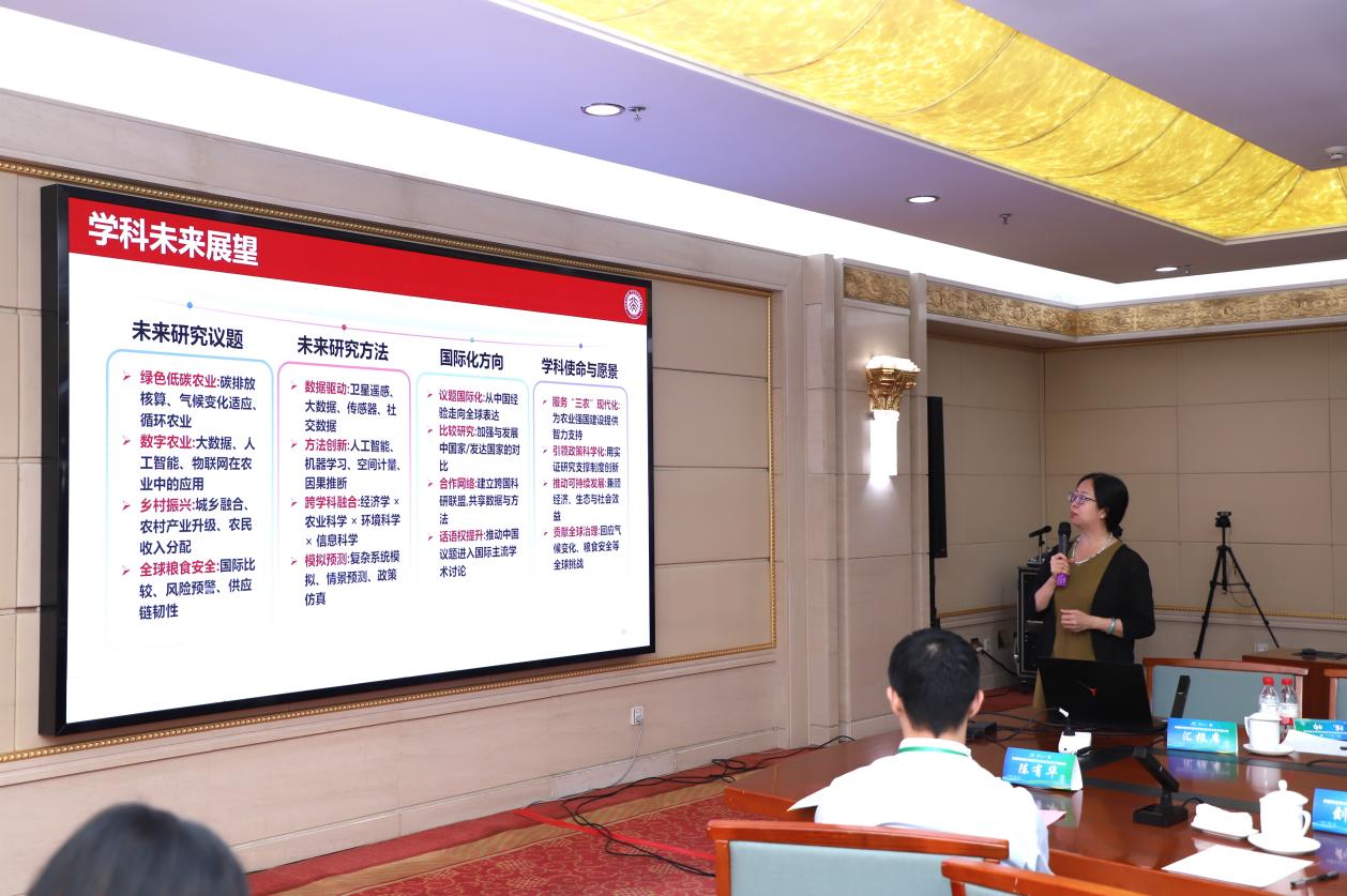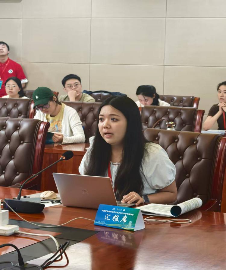 最后,西北农林科技大学吴丽姝博士报告了中国农业新质生产力的测度方法与影响机制。研究显示,农业新质生产力呈现稳步增长但区域间不平衡现象突出,受人力资本、技术创新与制度环境等多因素影响。她建议通过加强农业科技研发、深化教育改革、优化要素配置促进区域协调发展。杨丹教授在评议中强调应进一步突出地域异质性分析,完善新质生产力评价体系,强化结果的政策针对性。