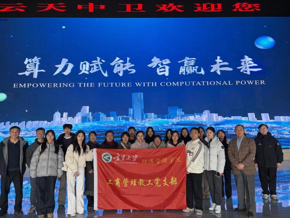 周学勤副院长精心安排下,工商管理教工党支部党员老师、工商管理专业和数字经济专业研究生们于2025年12月11日开展了一场以“数字赋能·智见未来”为主题的调研实践活动。本次活动聚焦数字技术与产业融合前沿,在中卫市数据局迟磊科长的带领下,组织师生走进中卫云展馆、航天驭星卫星测控指挥中心、中国广电-宁夏中卫数据中心及中交智谷(宁夏中卫)产业园,通过实地参观与现场教学,深入了解数字技术在航天、通信、智慧建造等领域的创新应用,着力推动党组织活动与访企拓岗、产业需求深度融合,探索党建引领下校企协同育人新路径。