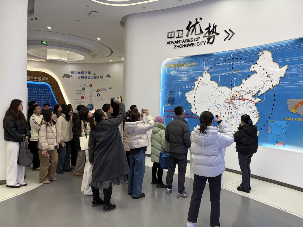 中卫校区,经过短暂休整,抵达中卫云展馆,馆内融合航天、云计算、大数据等主题展区,通过互动体验、模型展示与科普讲解,生动呈现科技与日常生活的紧密联系。师生感受到数字技术在城市治理、民生服务等方面的赋能作用,进一步理解了数字经济的社会价值与技术逻辑。