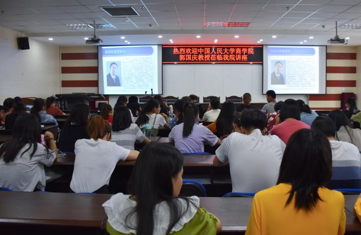 副院长冯蛟主持,工商管理类专业学生和有关教师聆听了此次讲座。