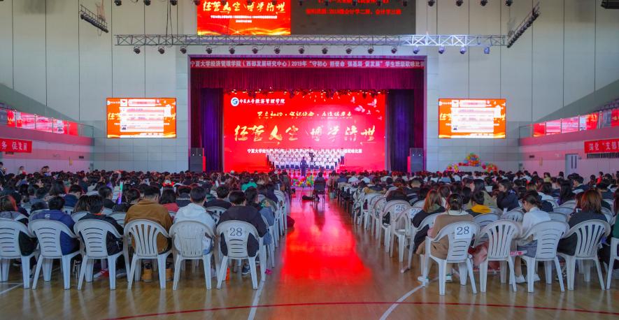 (西部发展研究中心)于文萃校区大学生活动中心盛情举办2019年“守初心、担使命、强基层、促发展”班级歌咏比赛,全院1500多名本科生,22个班级参加了比赛。