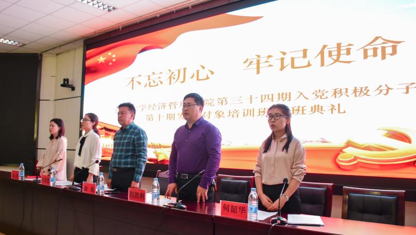 党委书记张桓,党委副书记程胜利,学生工作办公室负责人、会计学本科生党支部书记王嘉豫、工商管理本科生党支部书记姚硕参与本次会议,第三十四期入党积极分子暨第十期发展对象到场学习。典礼由何韶华主持。