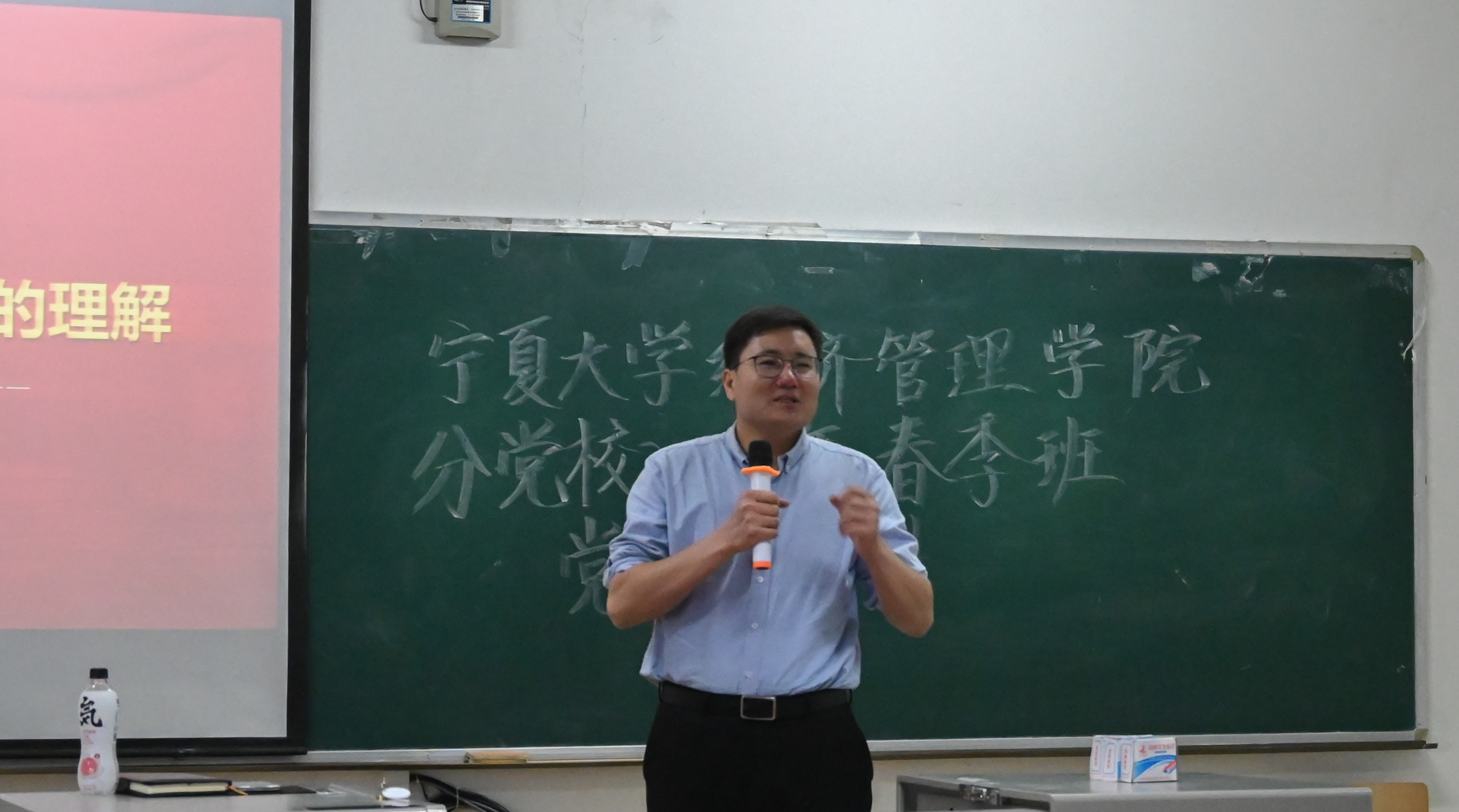 (西部发展研究院)学生工作办公室负责人艾萨·阿尤普,第四十一期入党积极分子和第十七期发展对象参加此次党课。本次党课由艾萨主讲。