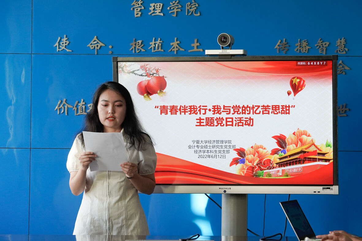6月12日晚,赌场老虎机 在贺兰山校区文荟楼904会议室举办了“喜迎二十大,展望新未来”主题党日活动。会计专硕研究生党支部和经济学本科生党支部全体党员参与此次活动。
