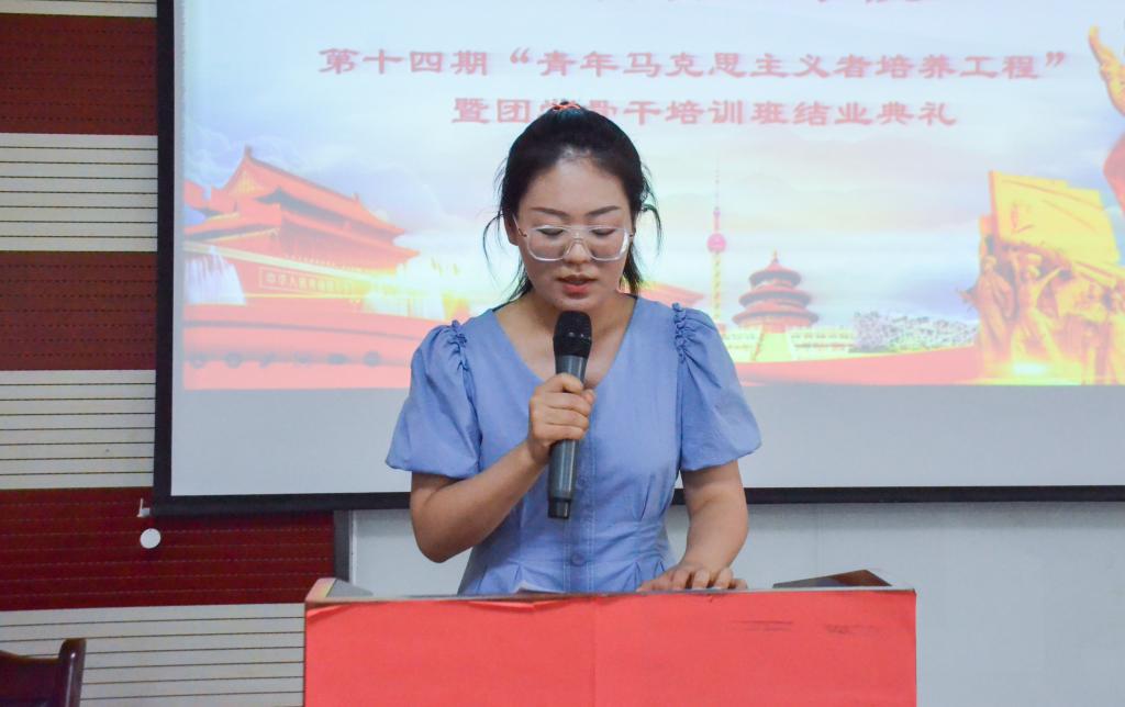 本次青马班培训内容丰富,既有理论学习又有社会实践和素质拓展,很好的提升了学员们的思想政治素质和责任担当。本期培训过程中涌现出了许多优秀小组和优秀个人,艾萨为他们颁发荣誉证书并给予鼓励。来自2020级农林经济管理班的谷玥瑾代表全体学员发言。她讲到,在培训过程中,她更加深入的理解了马克思主义中国化的发展历程,并从思想上深刻领悟到了我国国情及当今社会对青年一代的要求。最后,她表示,会在今后的日常生活中延续青马精神,不断提高思想政治素质、政策理论水平努力成长为社会主义事业的合格建设者和可靠接班人。