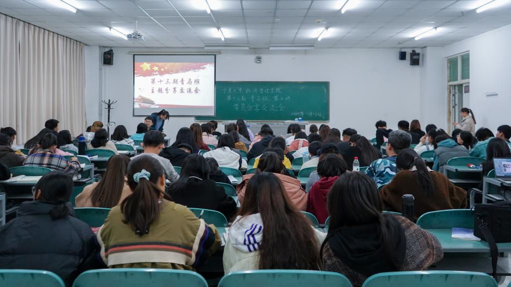 于贺兰山校区文荟楼113教室举行了第十三期青马班第三讲学员分享交流会。第十三期青马班全体成员到场学习。会议由2020级物流管理班桂琳主持。