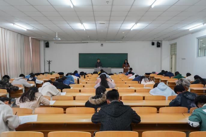 本期党课考试内容主要涉及中国共产党章程、十九大知识应知应会和“不忘初心,牢记使命”主题教育应知应会相关知识。本次党课考试一共十个考场,共四百人参与。每间教室有四十名考生、两名监考人员。监考人员秉持公平公正原则,认真监考。参考人员遵守考试纪律,诚信应考。