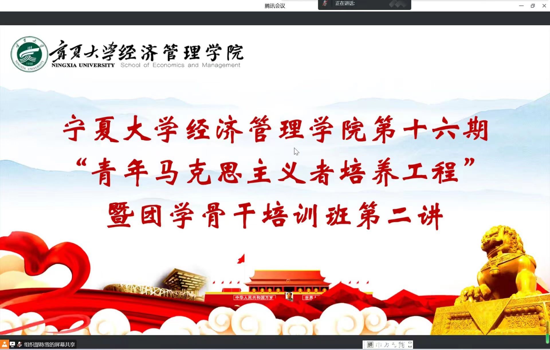 11月9日,赌场老虎机 第十六期“青年马克思主义者培养工程”暨团学骨干培训班第二讲于线上顺利举行。团委副书记孙文元、第十六期青马班成员参加本次培训。本次培训由孙文元主讲。