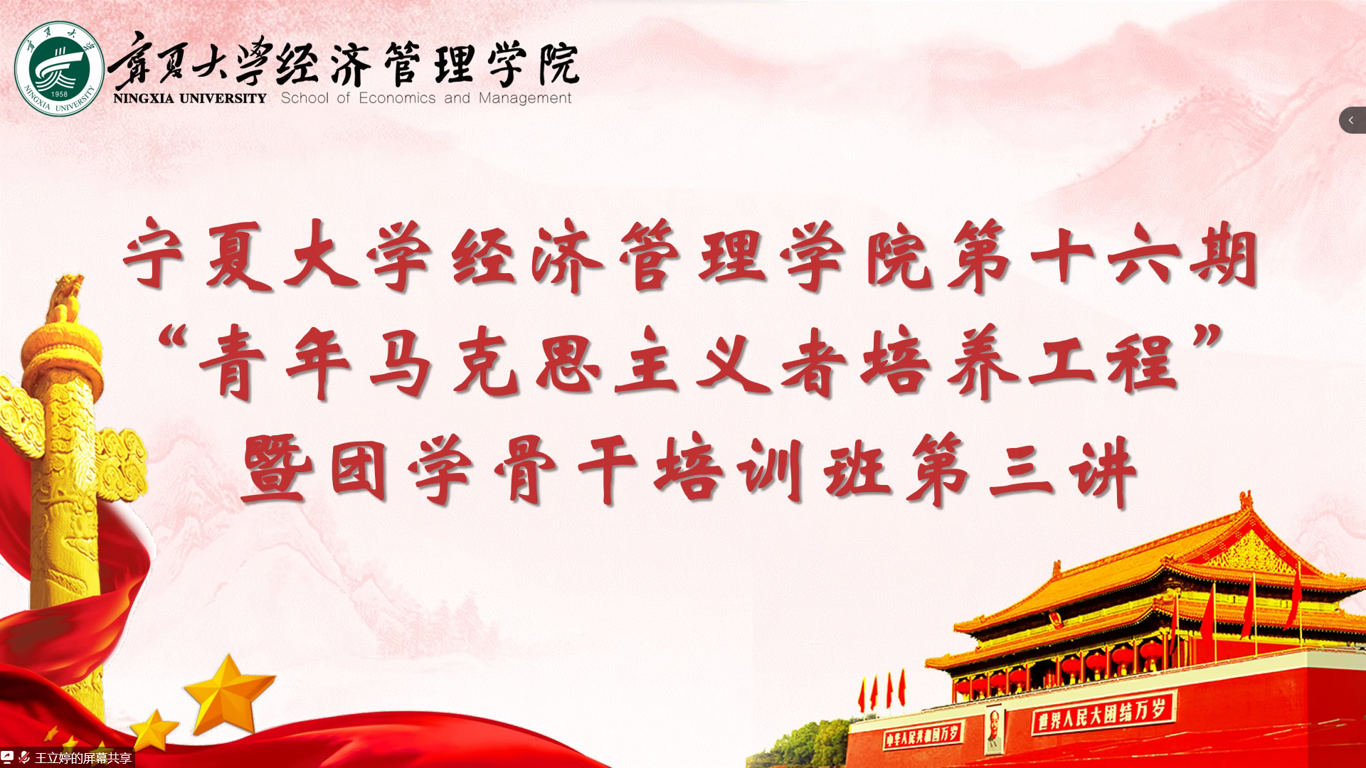 (西部发展研究院)第十六期“青年马克思主义者培养工程”暨团学骨干培训班第三讲于线上顺利举行。第十六期青马班成员参加本次培训。本次培训由赌场老虎机