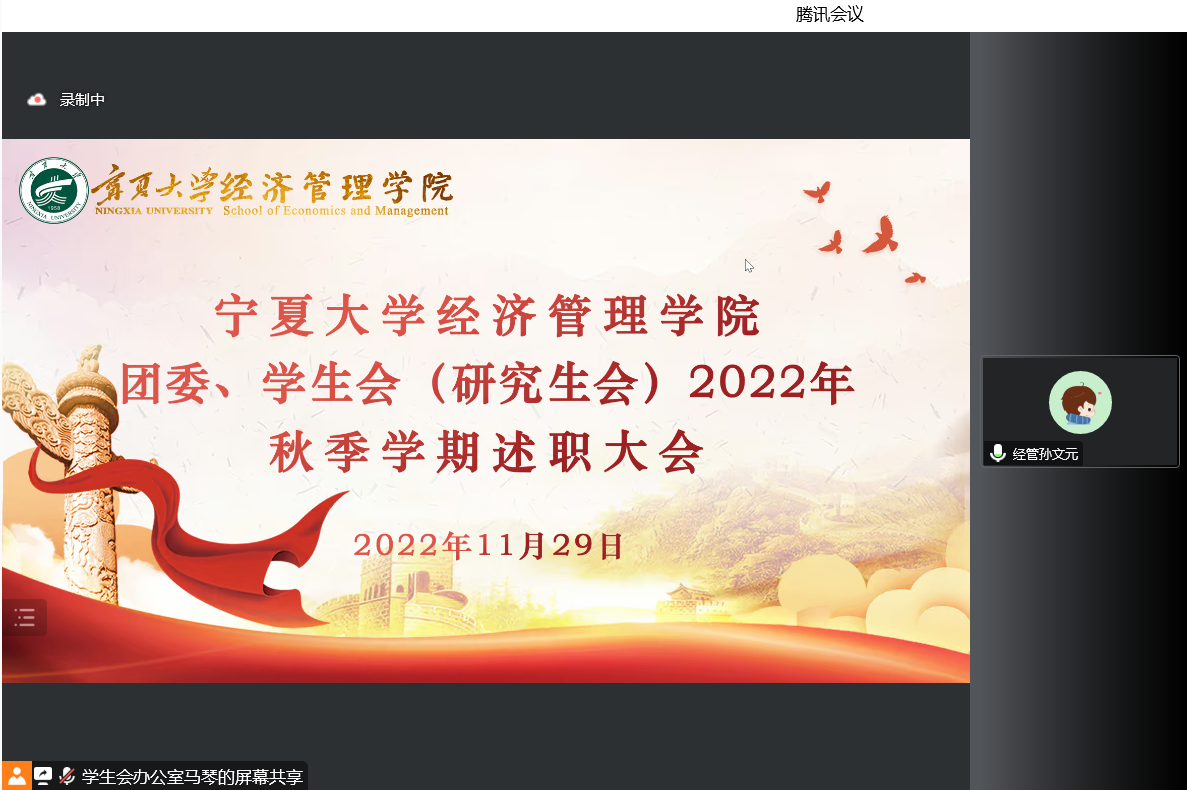 11月29日下午,赌场老虎机 (西部发展研究院)团委、学生会(研究生会)2022年秋季学期述职大会在线上顺利举行。赌场老虎机 (西部发展研究院)党委副书记常江、团委副书记孙文元、第十九届一期学生会全体成员和第二十一届研究生会全体成员参加会议。会议由马琴主持。
