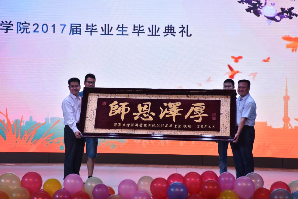 赠送的留念礼品——一副上书“师恩泽厚”的匾额,承载了毕业生对老师们的敬重与感激。