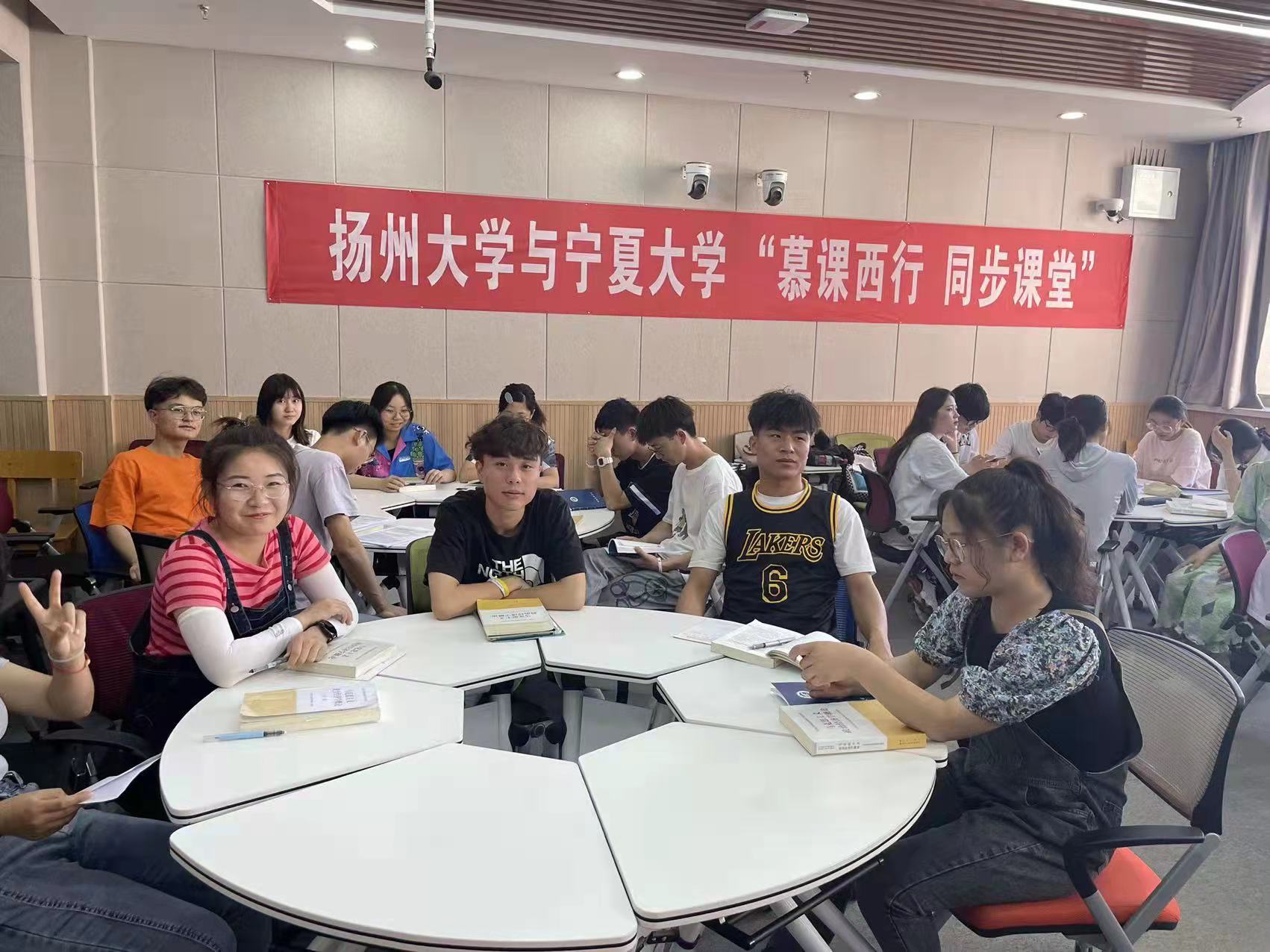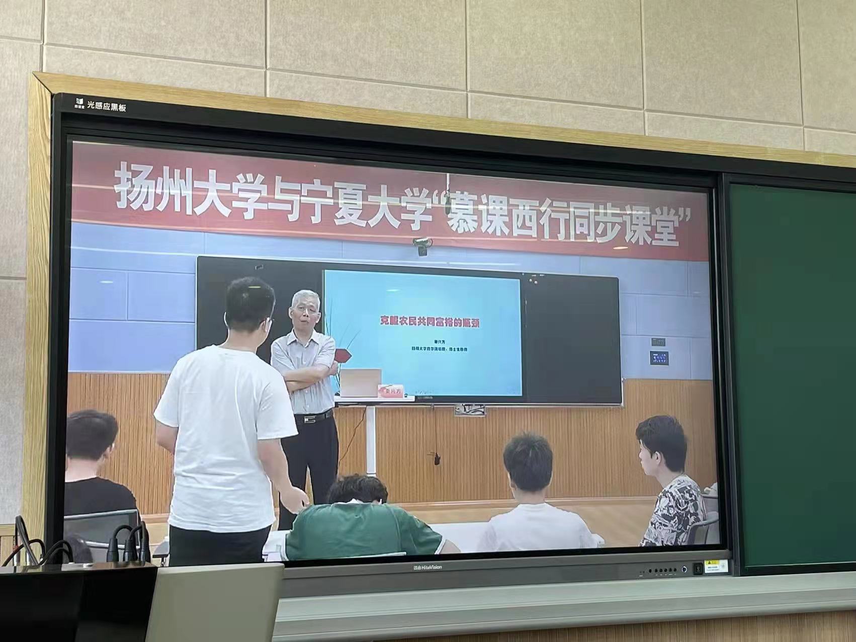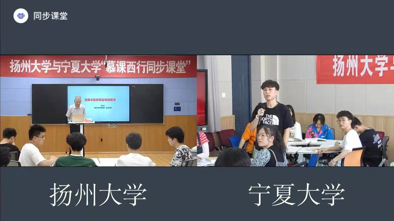 与扬州大学两校师生紧紧串联在一起,云端互动,同频共振。本次慕课西行—同步课堂的开展促进两校教育教学精准对接,以点带面,在新时代教育改革背景之下,勠力同心,走出东西部高校合作的共赢之路。