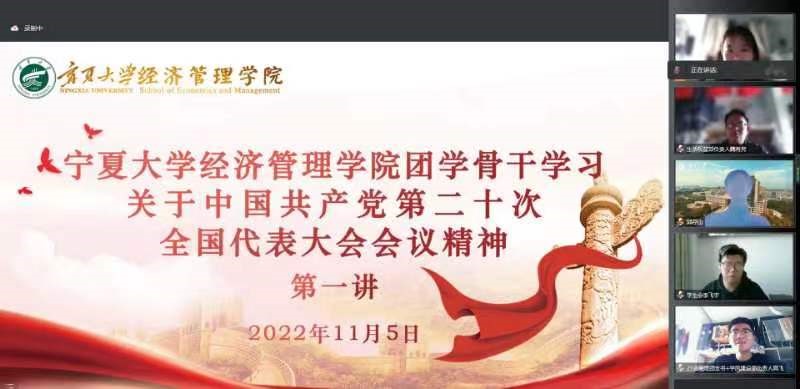11月5日下午,赌场老虎机 团学骨干学习中国共产党第二十次全国代表大会会议精神第一讲于线上顺利开展。赌场老虎机 团委副书记孙文元、第十九届一期学生会全体成员及各年级班长、团支书参加学习。本次学习由孙文元主讲。