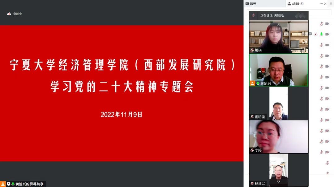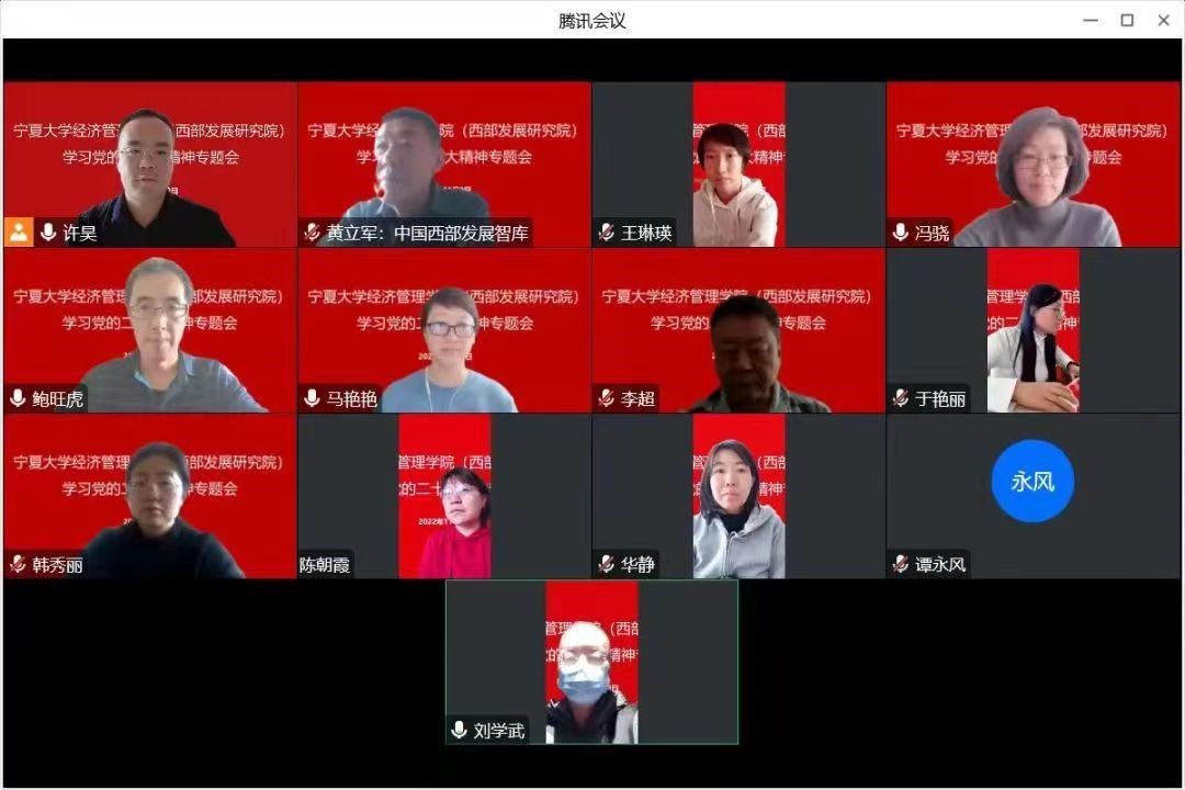 (西部发展研究院)召开学习党的二十大精神专题会。全院各系教职工、各办公室分别以腾讯会议形式进行学习交流。